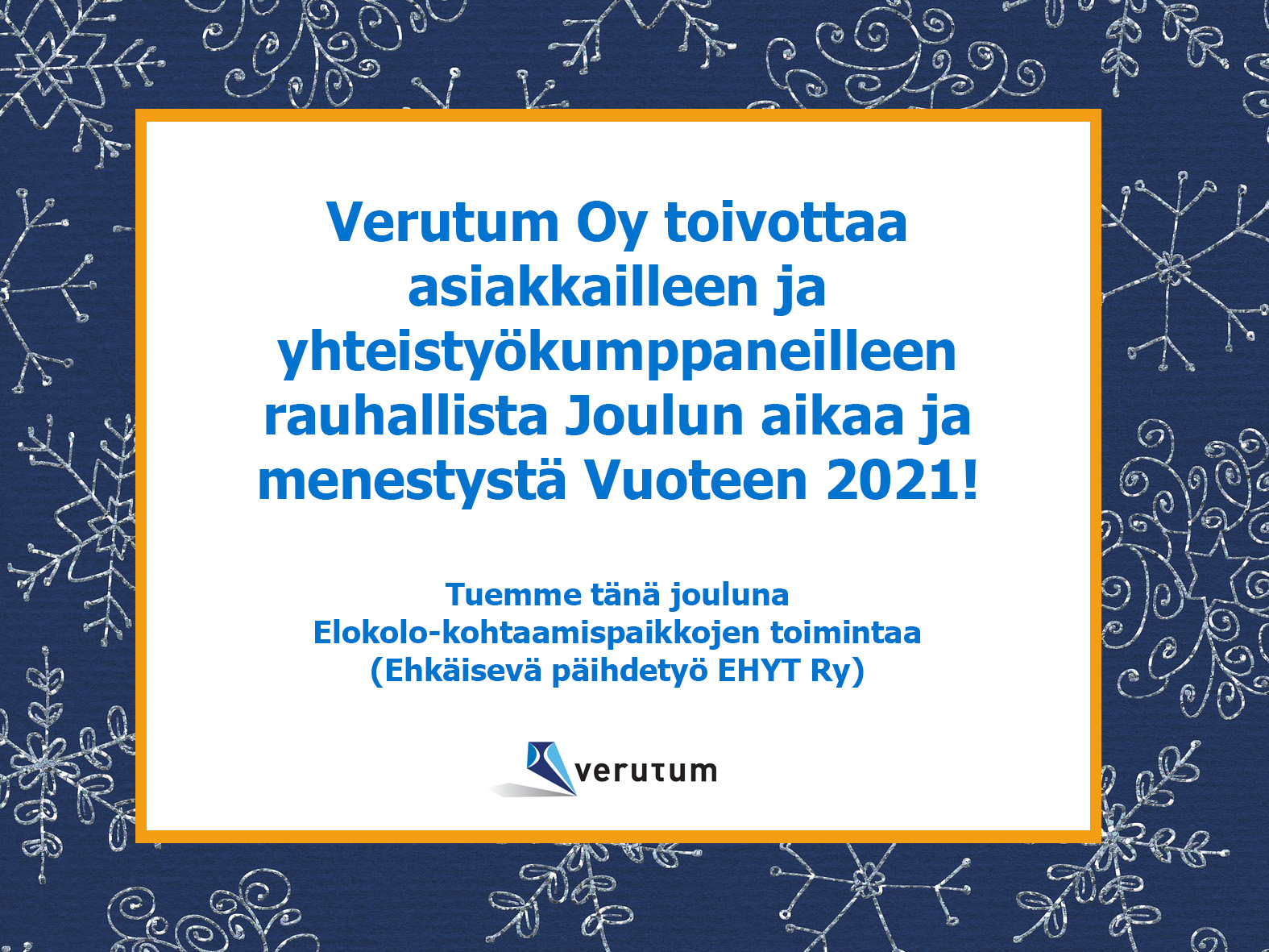 Sydämellinen kiitos kuluneesta vuodesta, rauhallista joulua ja menestystä vuoteen 2021!